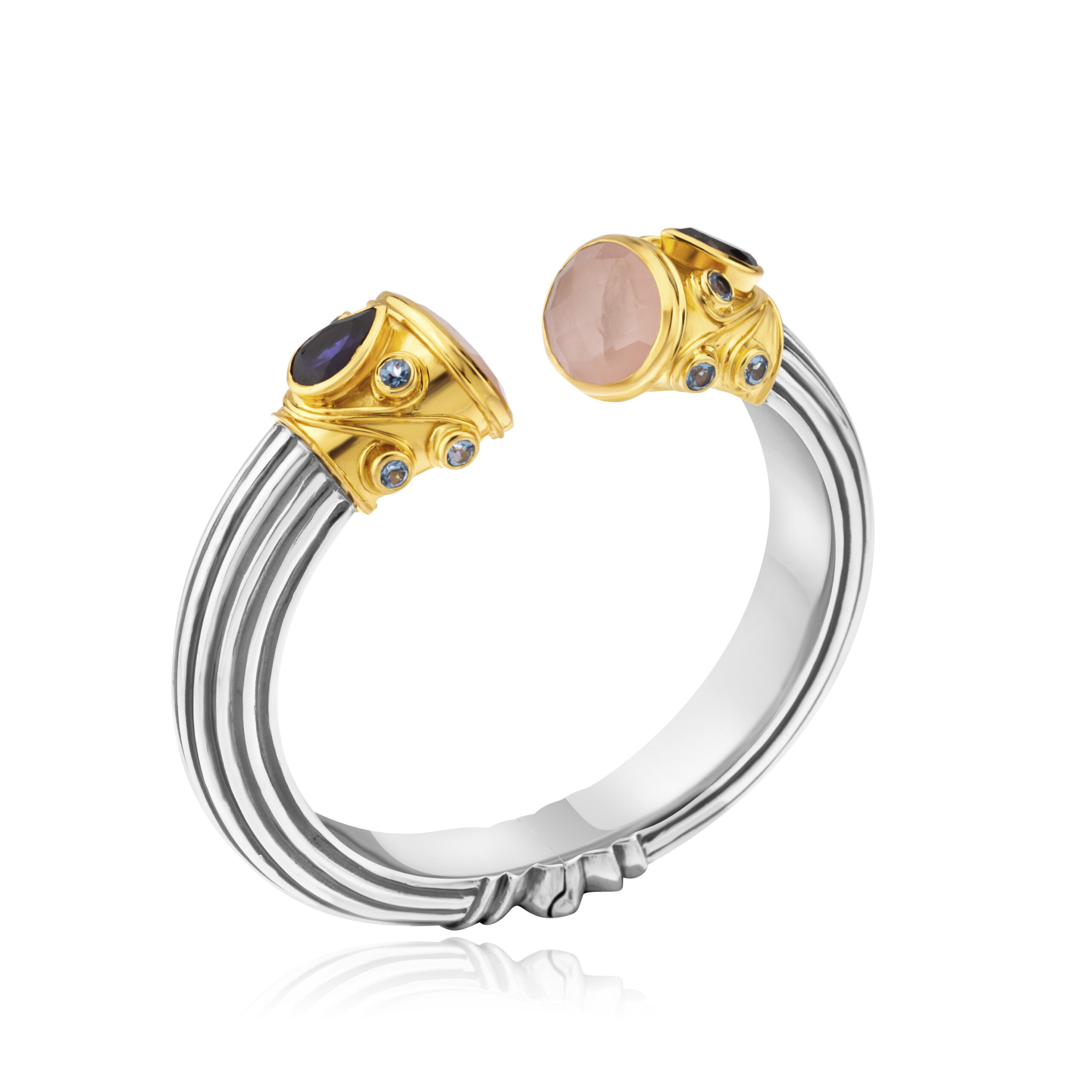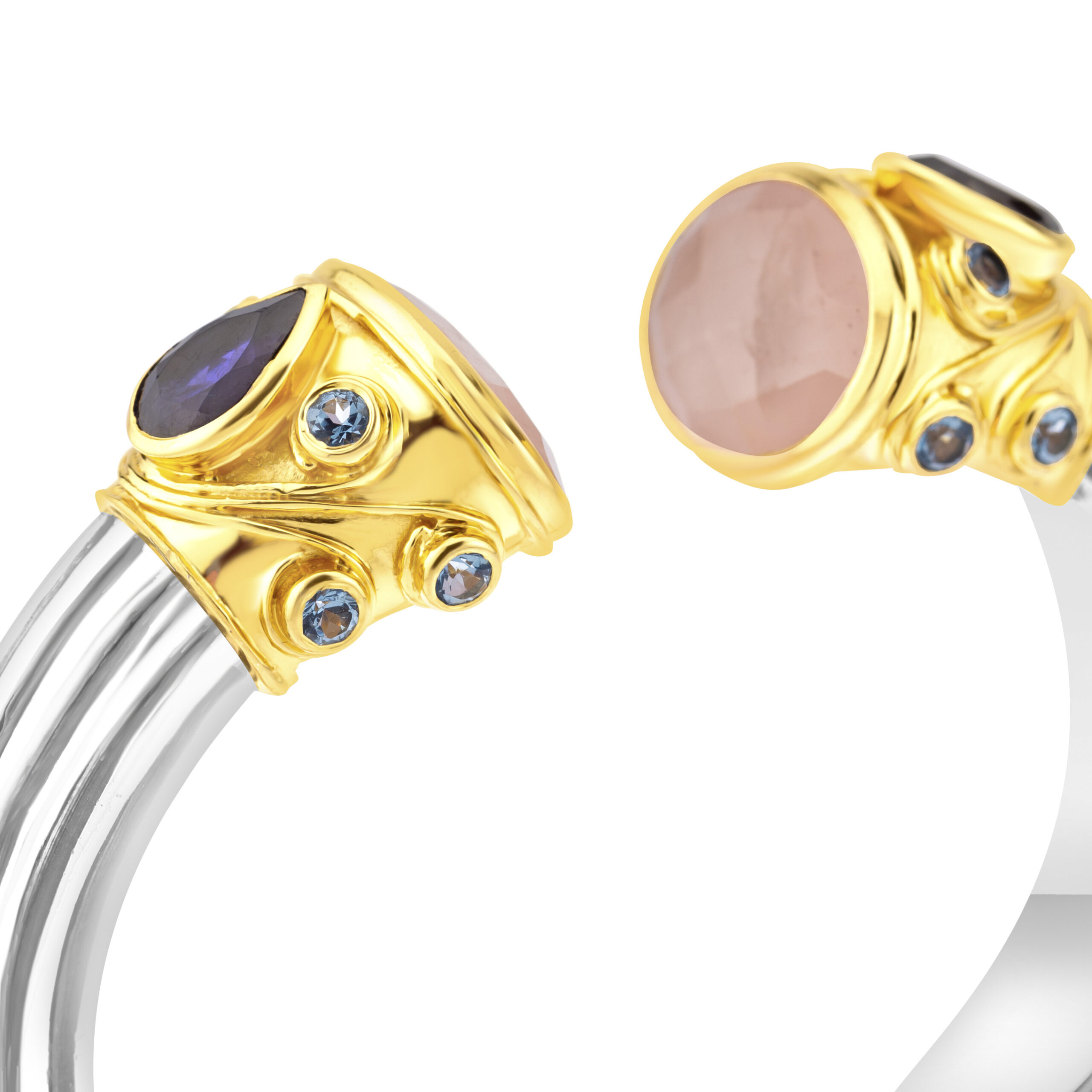 Silver and Gold Plated Rose Quartz Iolite Blue Topaz Cuff