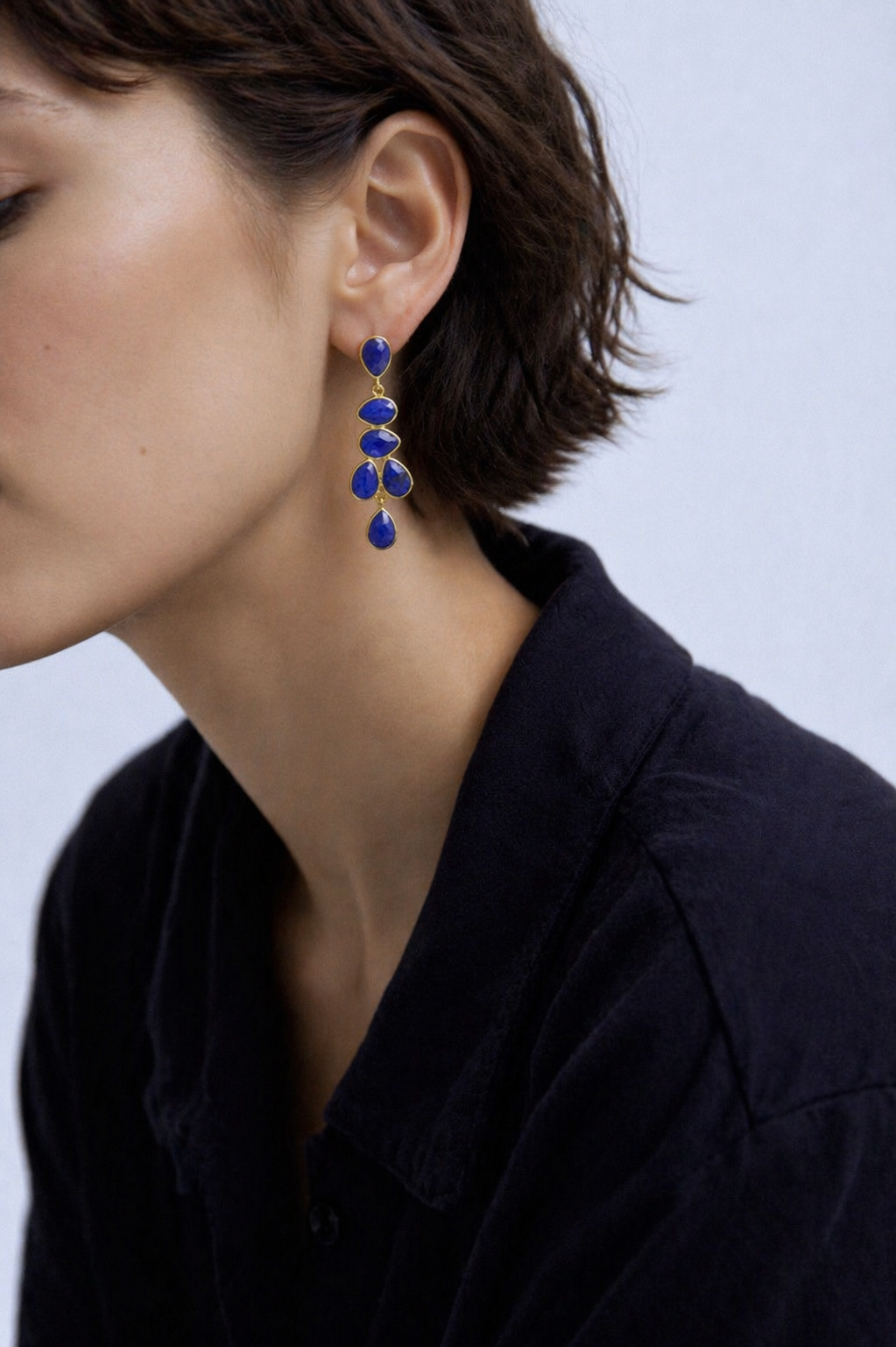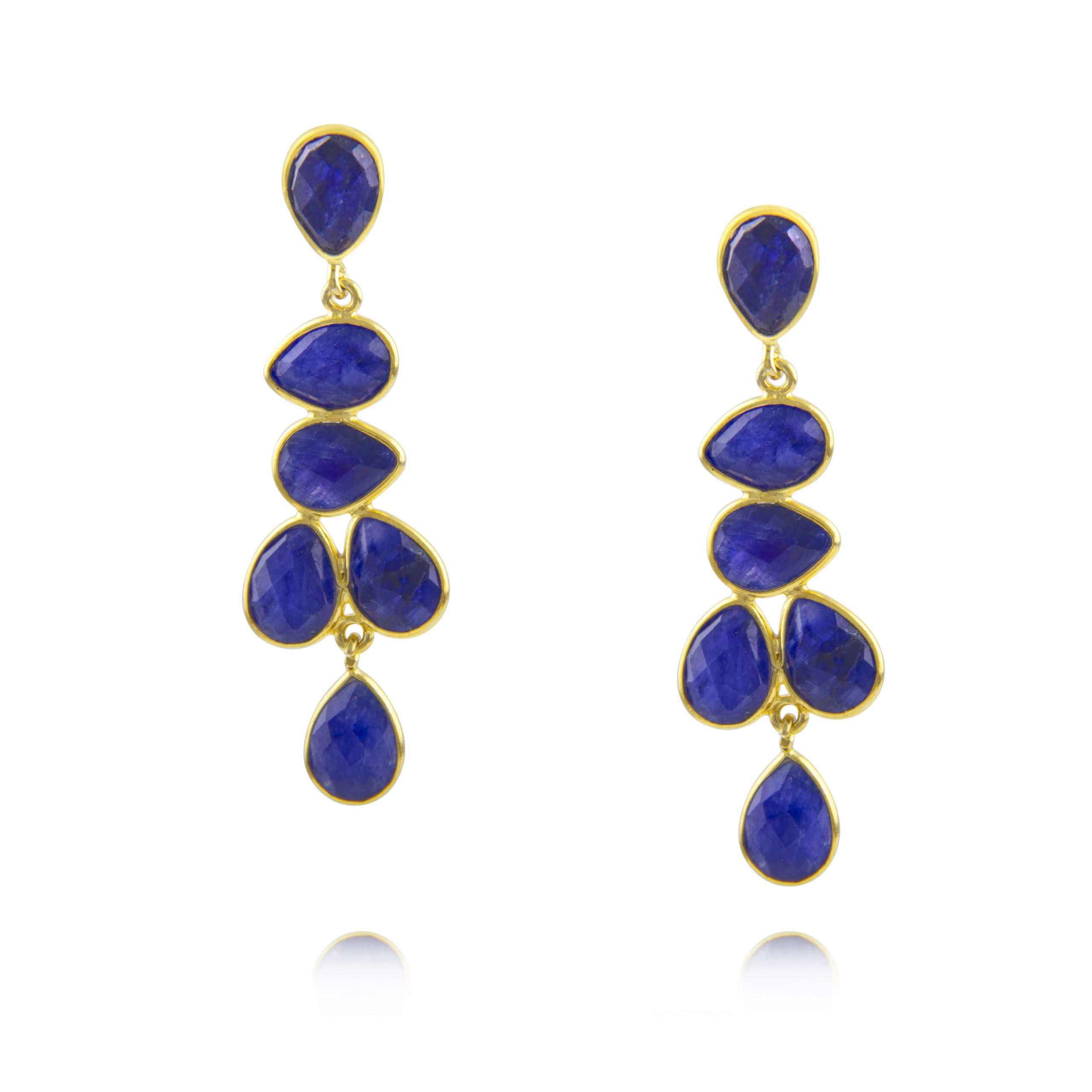 Perfect for a touch of glamour, these chandelier Lapis drop earrings add the finishing touch. Precious stone Lapis set in 18ct yellow gold vermeil on sterling silver.