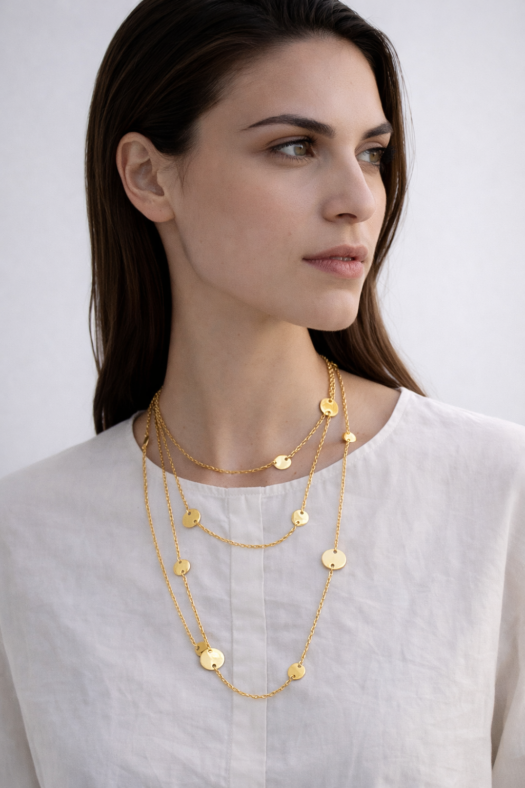 Yellow Gold Disc Chain Wrap Necklace